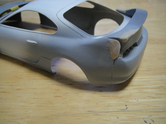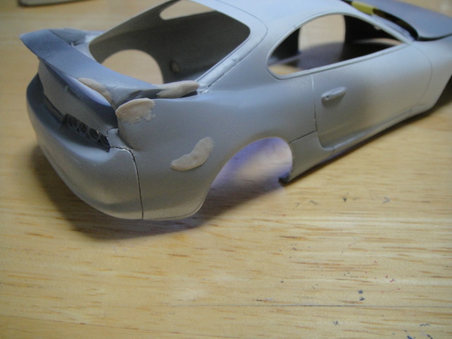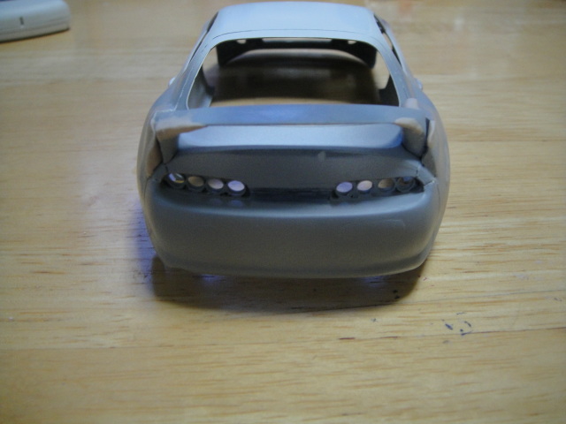 修正箇所にパテ盛り→乾燥待ち→紙やすりで修正→修正箇所にサーフェーサーを吹き付ける→乾燥待ち→まだ修正の余地があればパテ盛り→乾燥待ち………というループを、ここ数日間繰り返していました。妥協すると完成時に心残りができてしまうので、ここは妥協せずにジックリと作りこみます。しかし、サーフェーサーは偉大です。下地だけでは見えない小さな気泡やら段差やらが見つけやすくなります。使いすぎると塗装皮膜が厚くなってしまうのですけどね…。