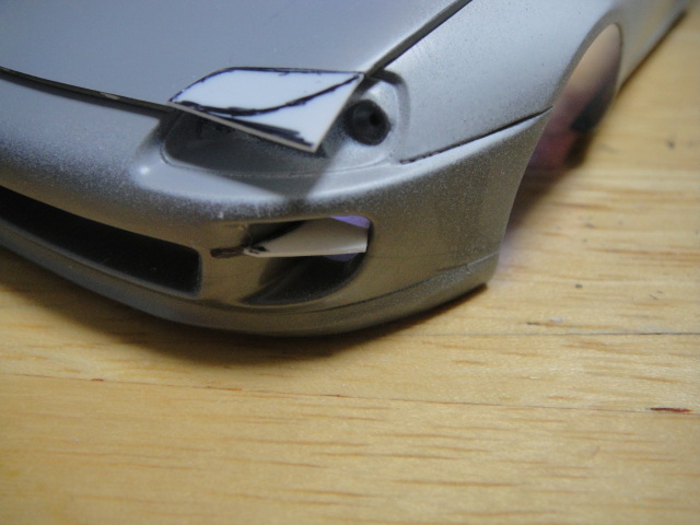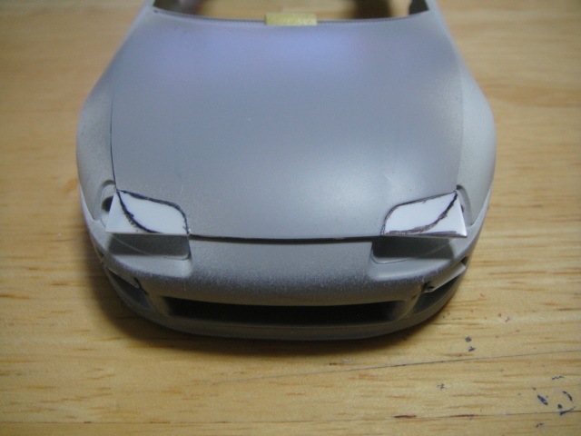 フロントのヘッドライト部分。後にクリアパーツの加工も控えています。