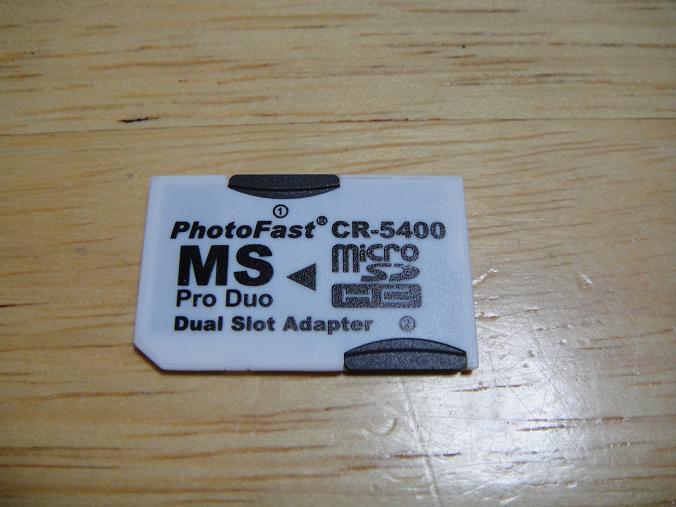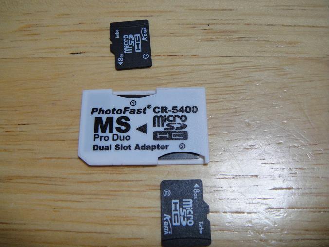 どうするものかというと、マイクロSDをメモリースティックとして使用できるというものです。こんな感じで挿して使用します。